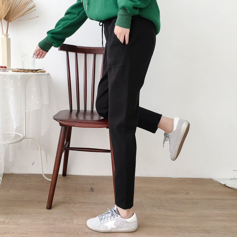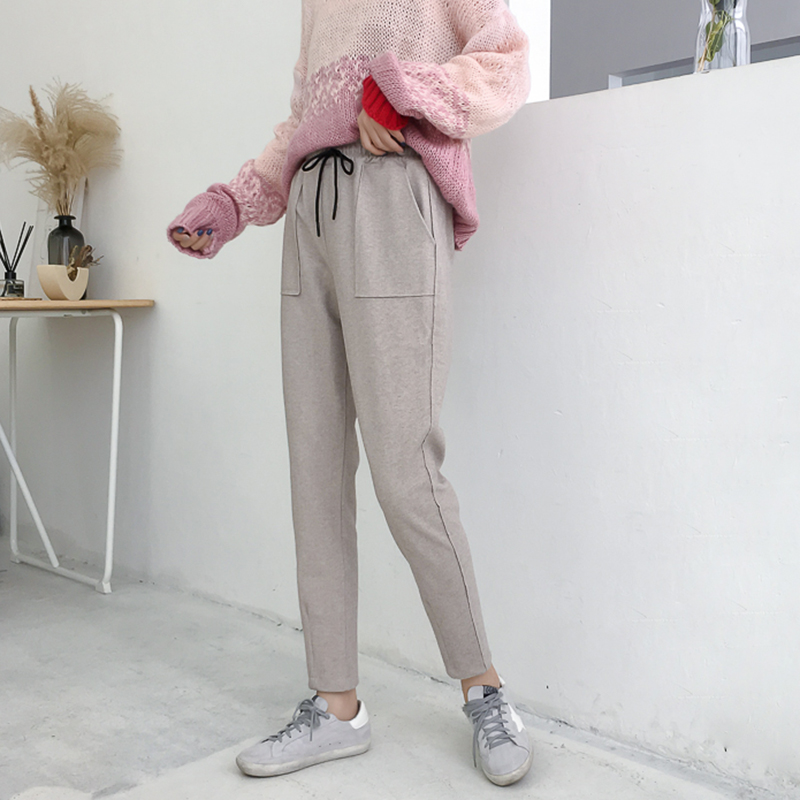 / 秋冬女裝2018新款學院風純色呢子休閑褲寬松哈倫褲高腰顯瘦九分褲