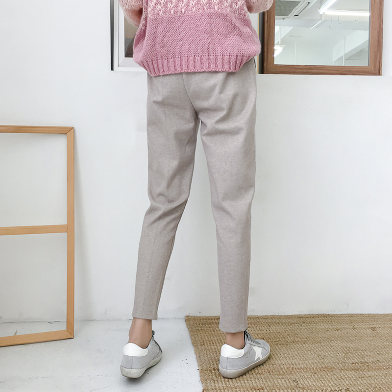秋冬女裝2018新款學院風純色呢子休閑褲寬松哈倫褲高腰顯瘦九分褲