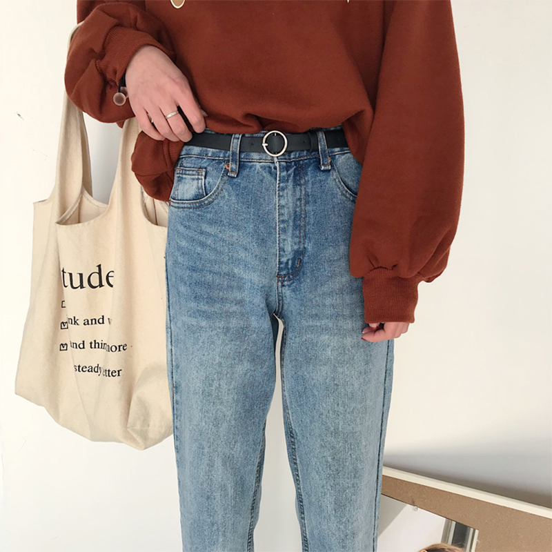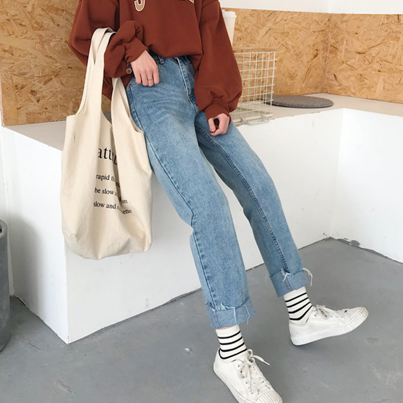 毛邊牛仔褲秋裝女2018新款韓版寬松顯瘦直筒褲學生百搭高腰長褲子