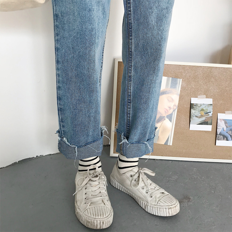 / 毛邊牛仔褲秋裝女2018新款韓版寬松顯瘦直筒褲學生百搭高腰長褲子