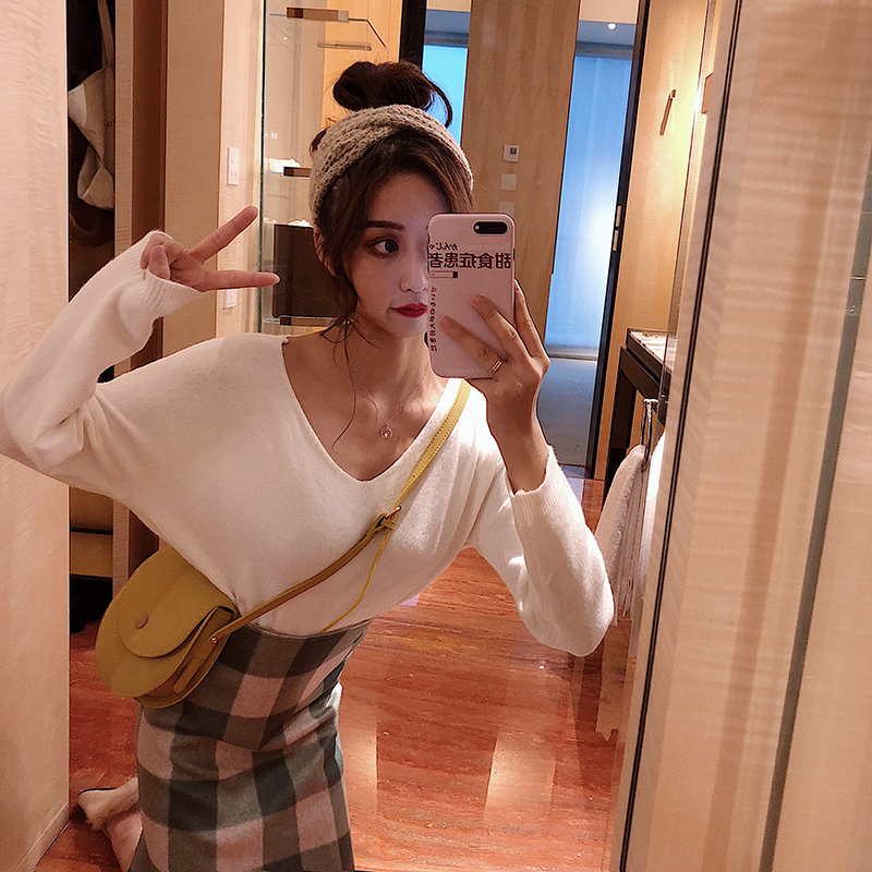 / 韓版純色寬松顯瘦V領套頭針織衫女2018新款復古百搭時尚chic毛衣