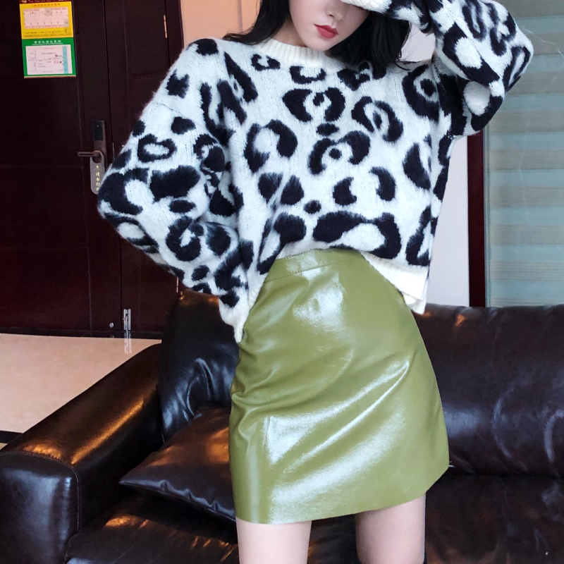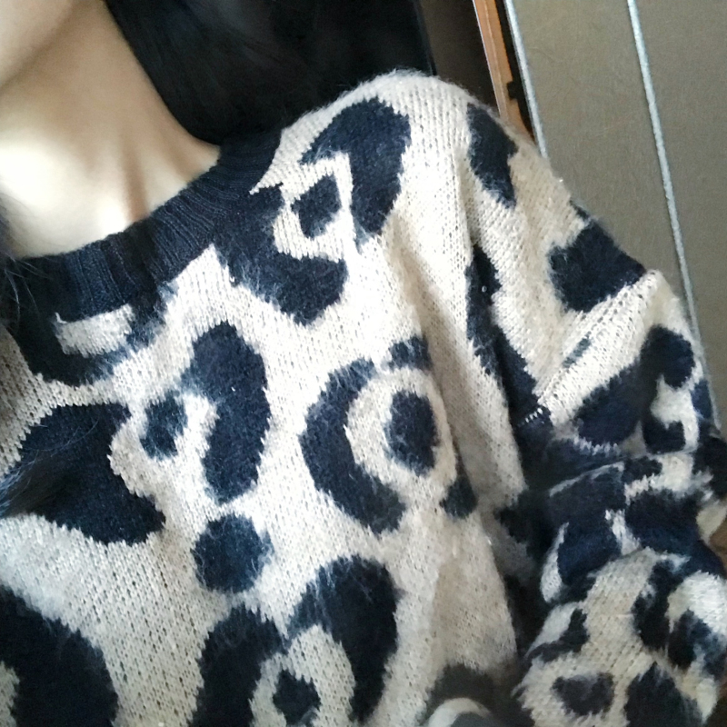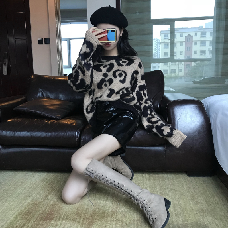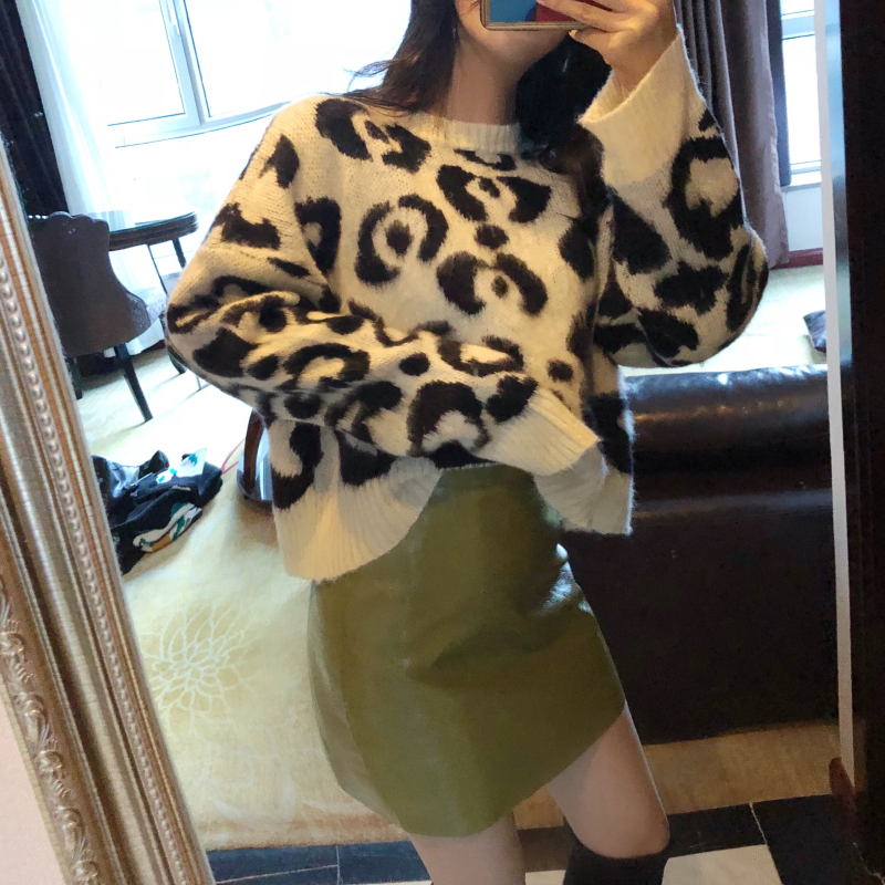 網紅款豹紋毛衣女套頭圓領上衣秋裝女2018新款寬松韓版針織衫潮