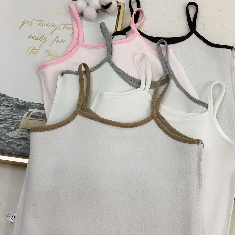 女裝冬季2018新款加絨保暖黑色吊帶小背心學生修身顯瘦上衣打底衫