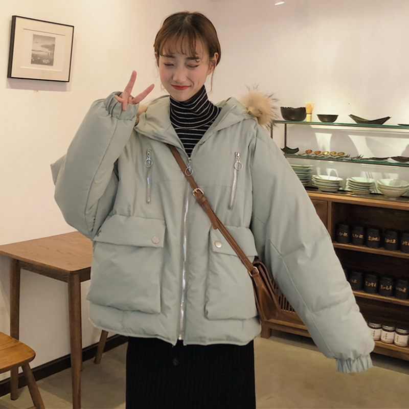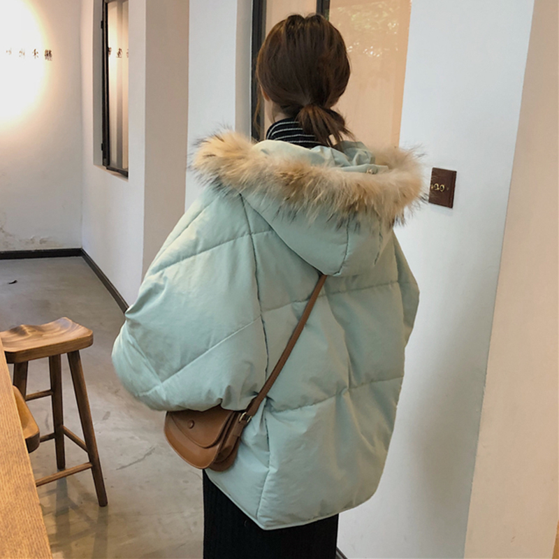 學院風大毛領連帽棉衣棉服外套女冬裝2018新款韓版寬松加厚面包服