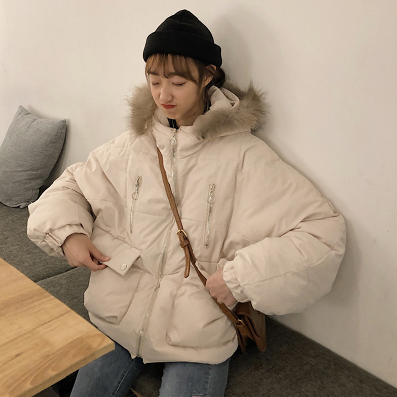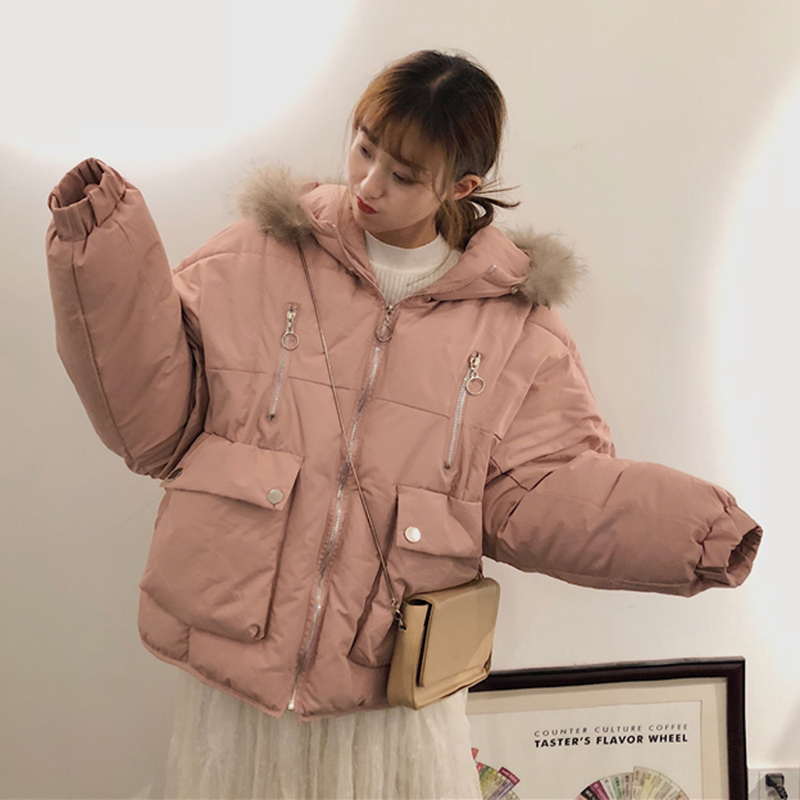 / 學院風大毛領連帽棉衣棉服外套女冬裝2018新款韓版寬松加厚面包服