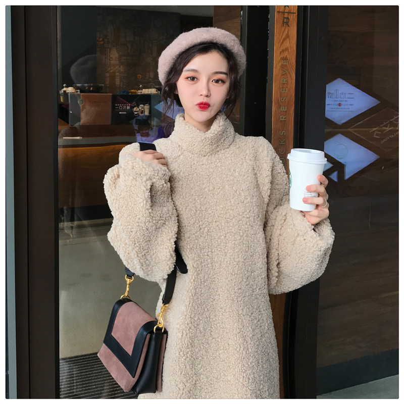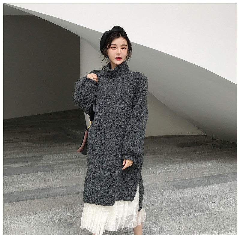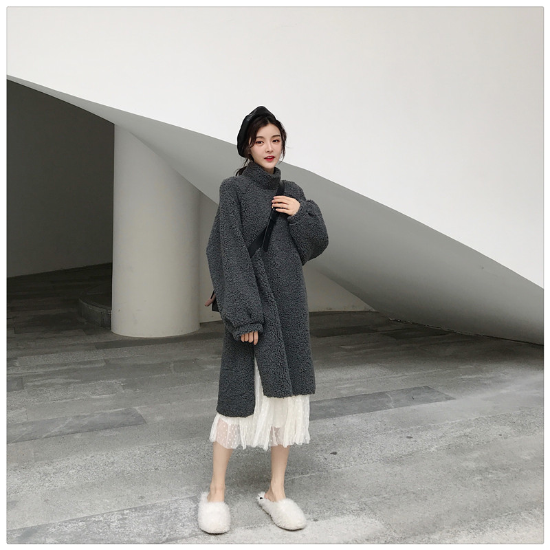 / 女神套裝秋冬新款網紗背心裙+毛毛高領側面開叉連衣裙外套兩件套