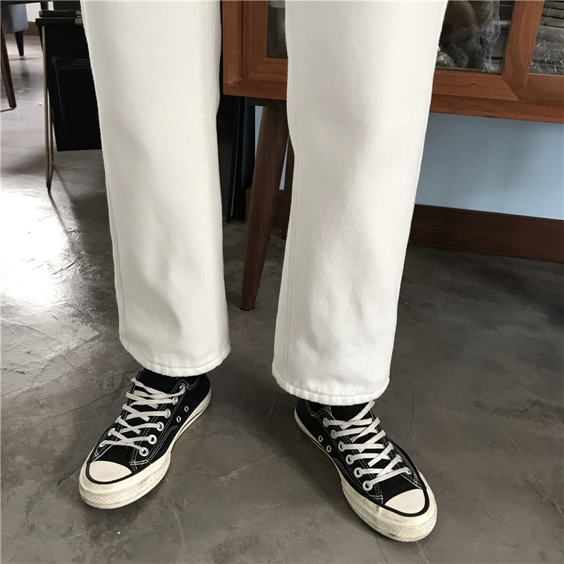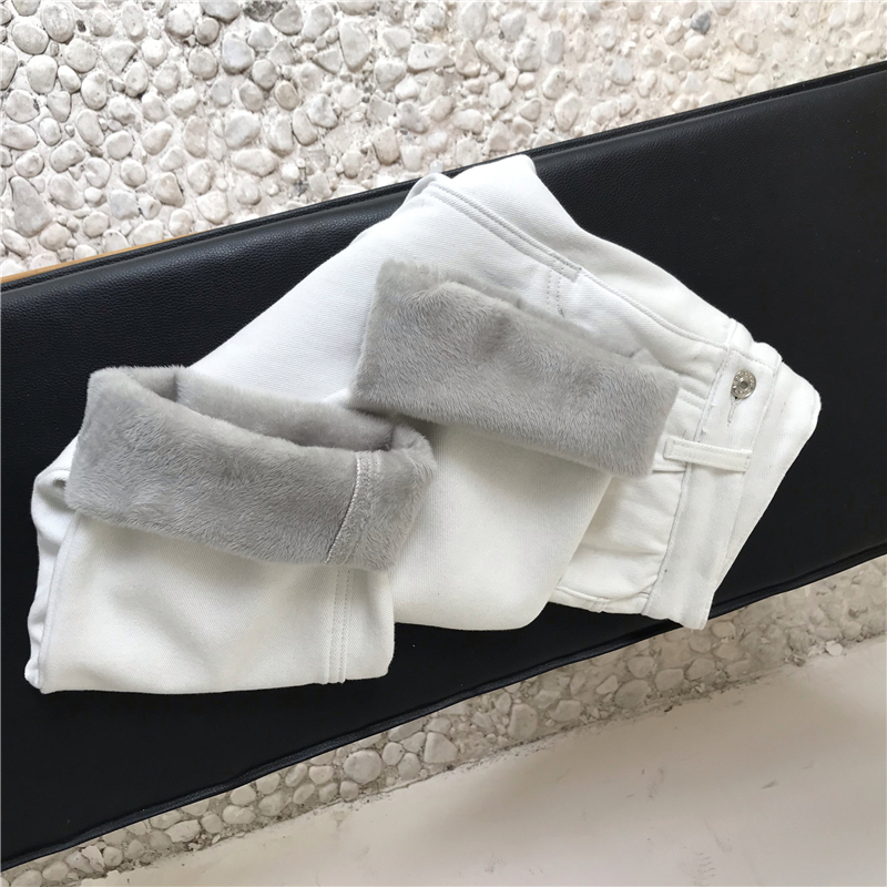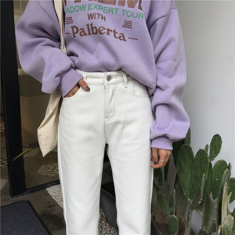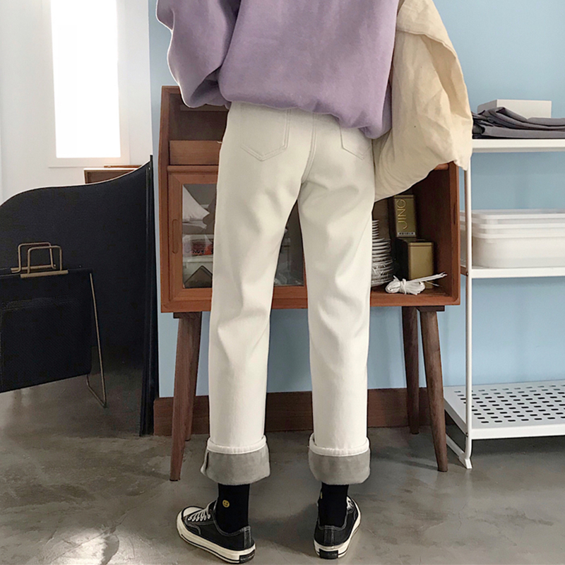/ 精神女生社會褲秋冬裝2018新款韓版加絨牛仔褲學生高腰顯瘦闊腿褲
