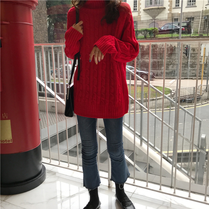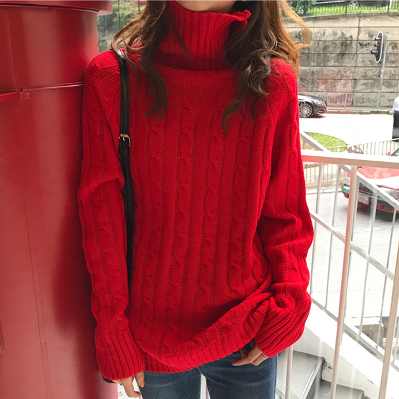 秋冬2018新款女裝韓版學生休閑寬松高領麻花毛衣慵懶溫柔長袖上衣