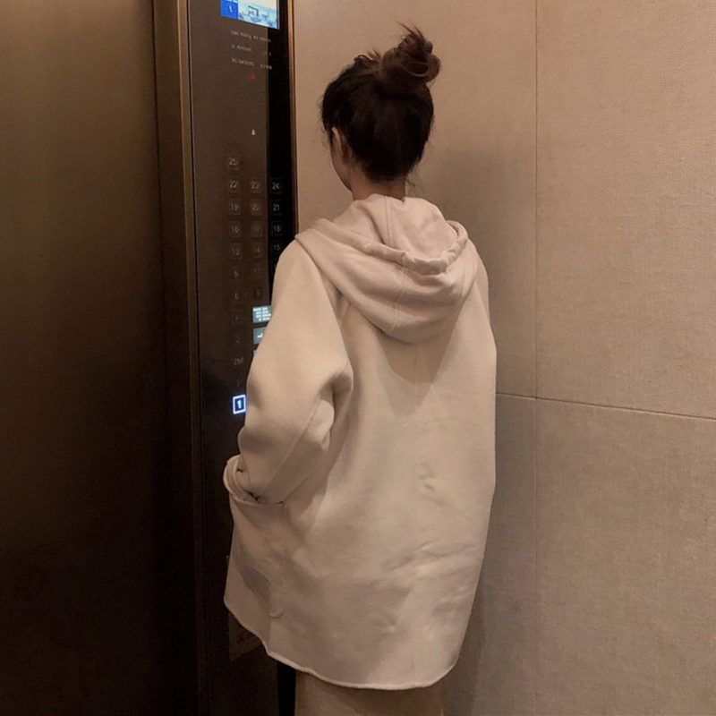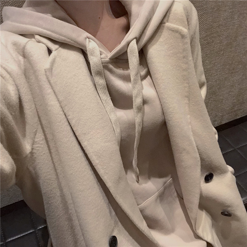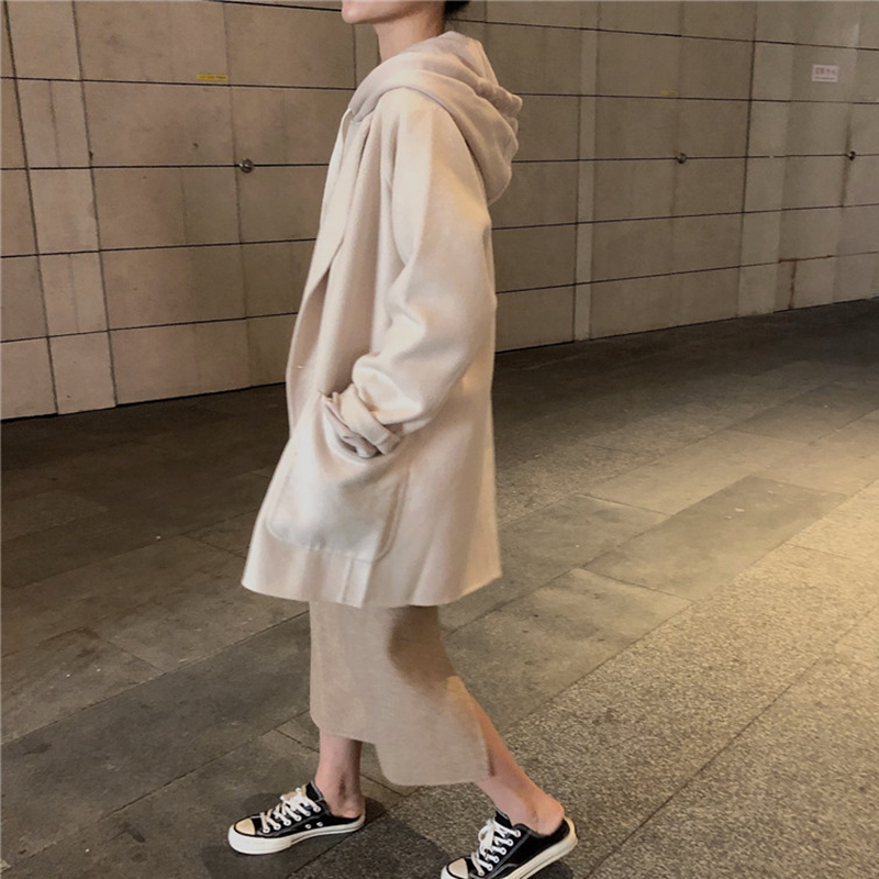 / 女神套裝秋冬新款2018流行呢子大衣寬松長袖衛衣高腰開叉針織裙子