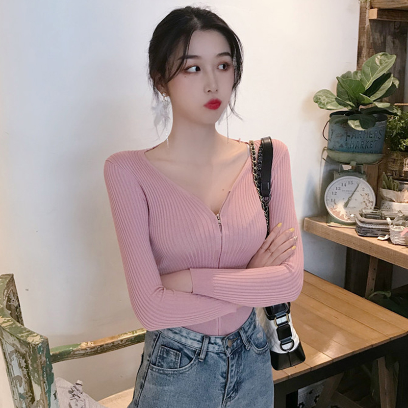 修身顯瘦針織開衫女秋冬裝新款黑色長袖短外套學生V領時尚上衣潮