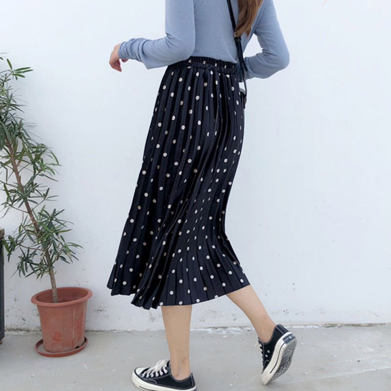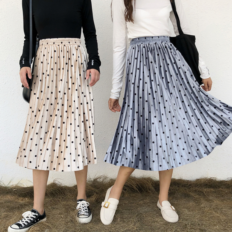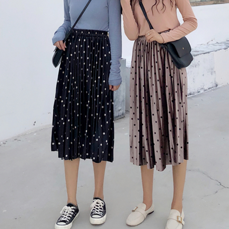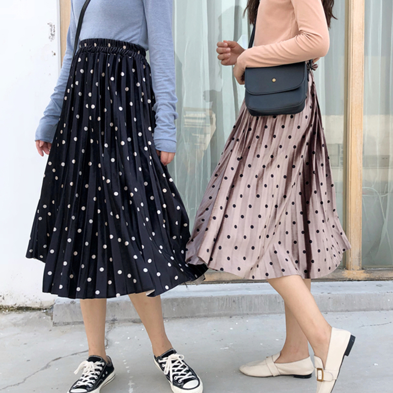 / 金絲絨半身裙女氣質顯瘦復古波點a字中長裙秋裝新款高腰百褶裙子