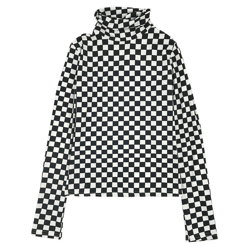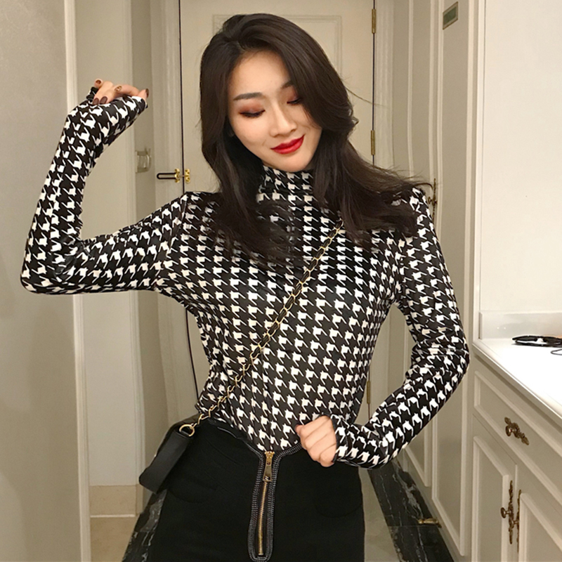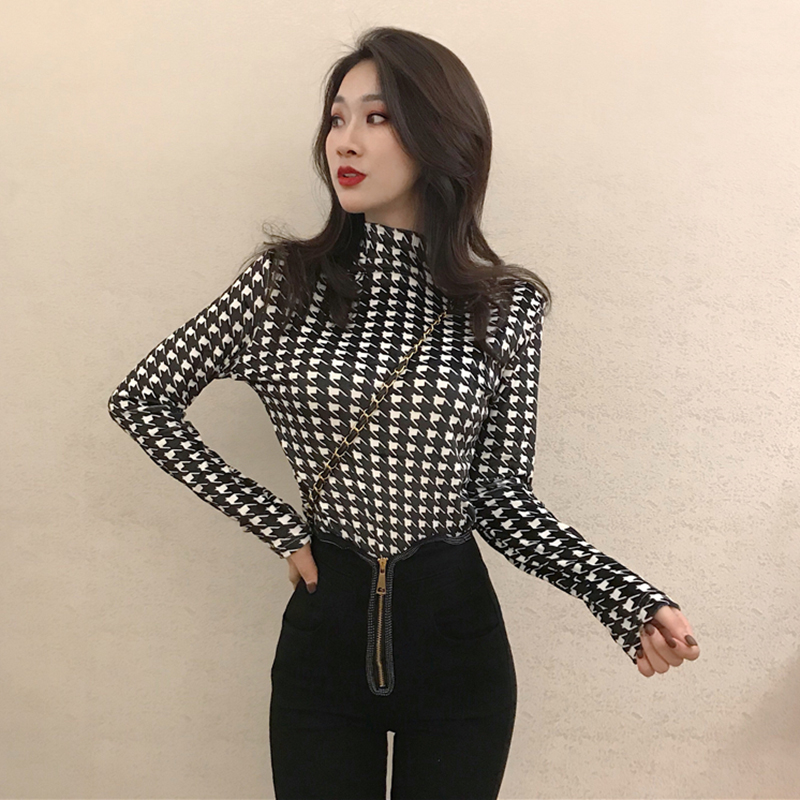 衣服2018新款女裝秋冬內搭長袖T恤港味修身千鳥格高領打底衫上衣