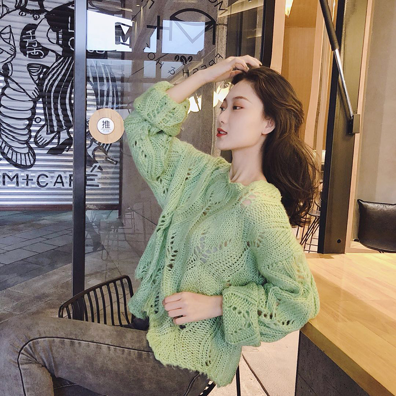 / 韓版時尚秋裝女2018新款氣質百搭圓領毛衣寬松顯瘦針織衫鏤空上衣