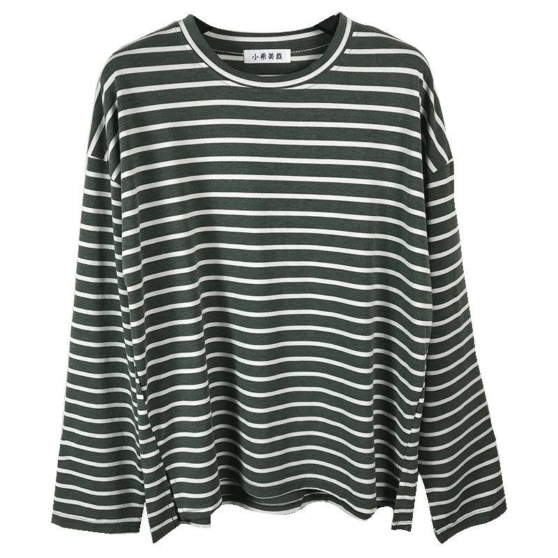 小清新長袖T恤女秋裝2018新款韓版學生黑白條紋上衣寬松時尚體恤