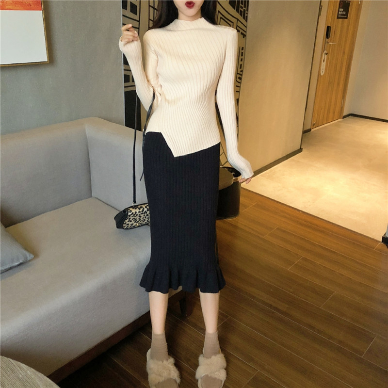 / chic秋冬毛衣女慵懶風韓版修身顯瘦不規則坑條針織衫女純色打底衫