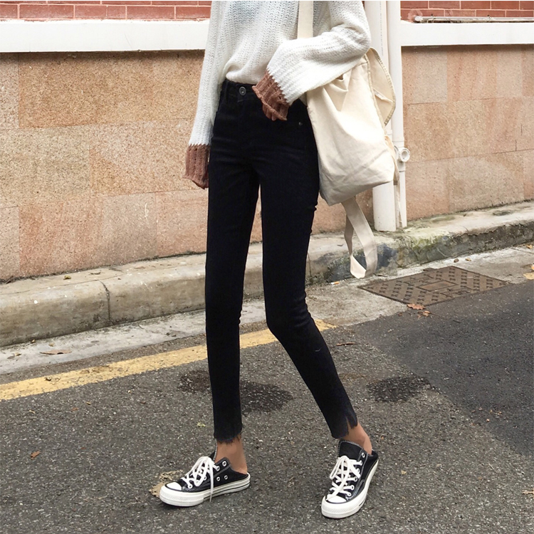 復古韓版高腰顯腿長款修身顯瘦鉛筆褲小黑褲小腳牛仔褲女春秋新款