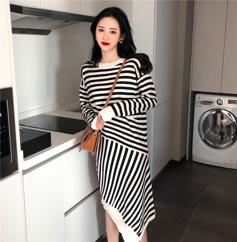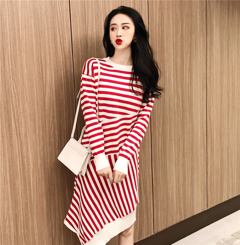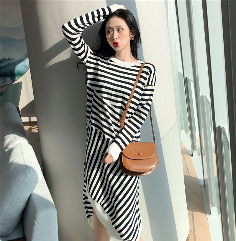 秋冬chic時尚復古套頭毛衣女2018新款氣質不規則百搭條紋針織衫潮