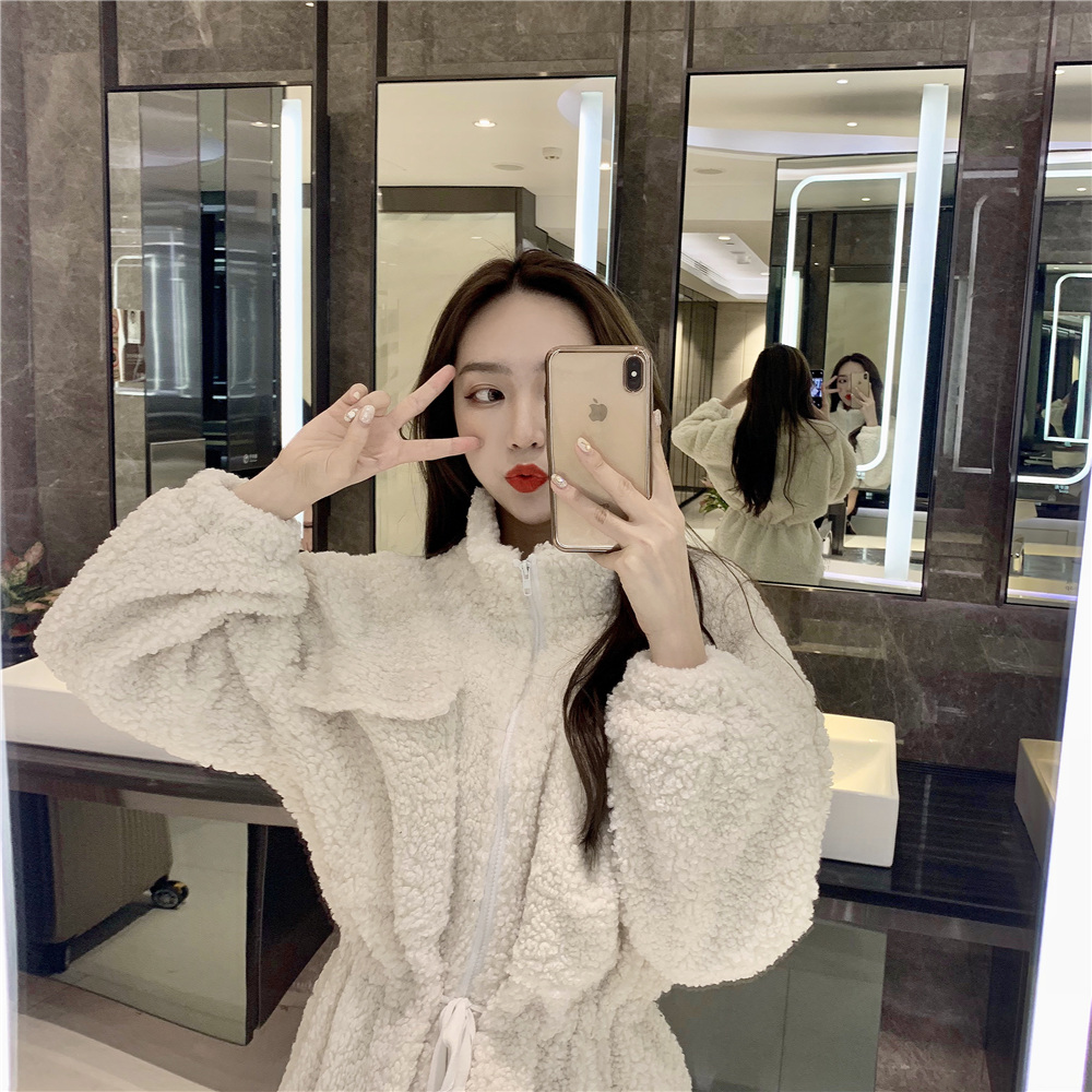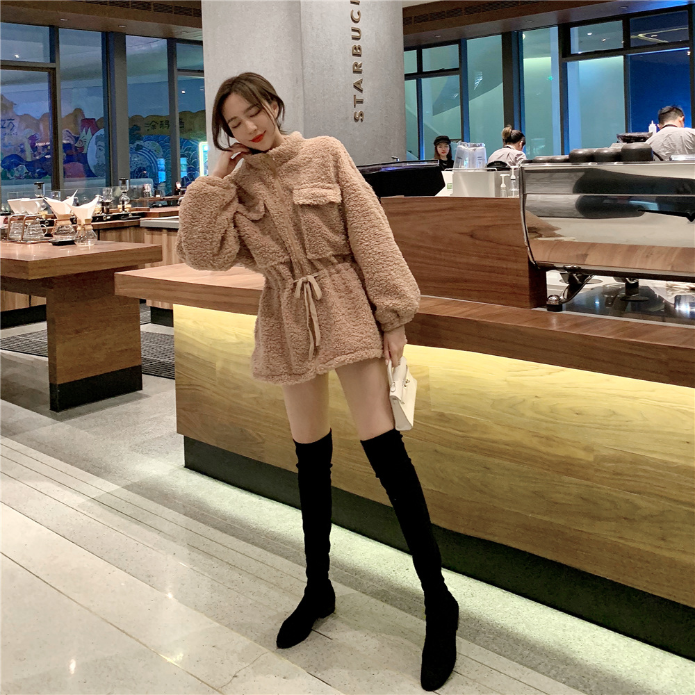 毛呢外套女冬季大衣新款2018韓版立領拉鏈收腰顯瘦百搭羊羔毛上衣
