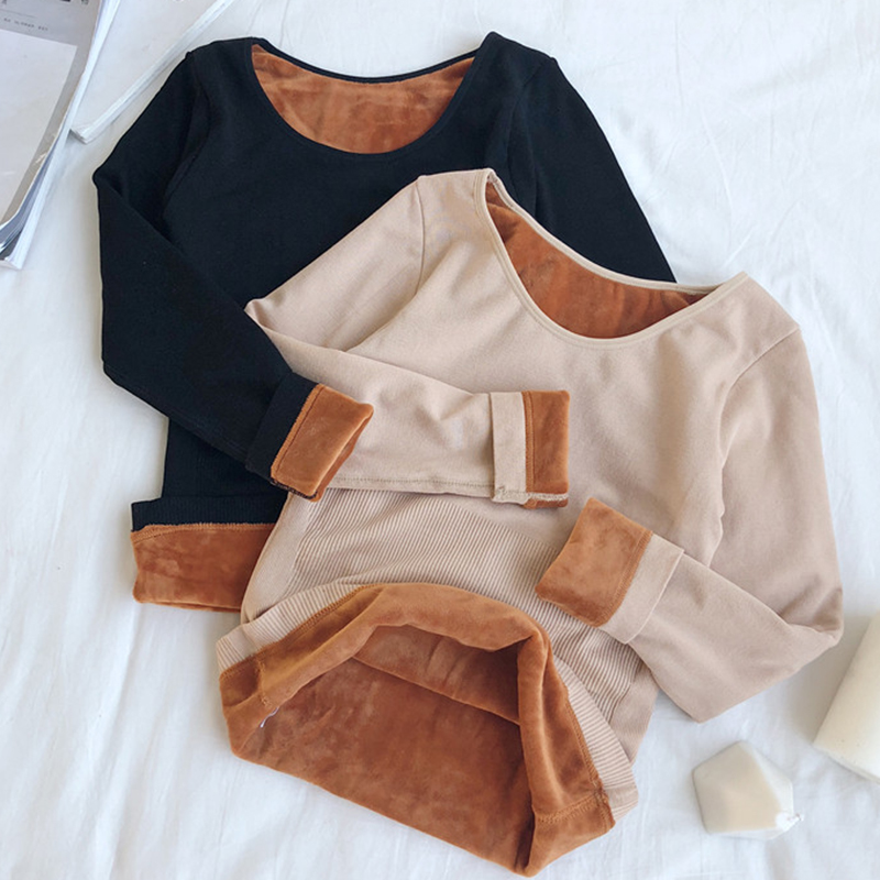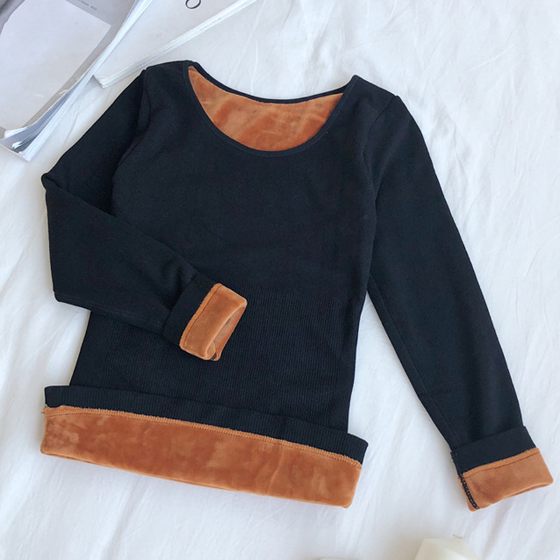 女冬裝2018新款韓版百搭黑色顯瘦打底衫修身加厚保暖長袖T恤上衣