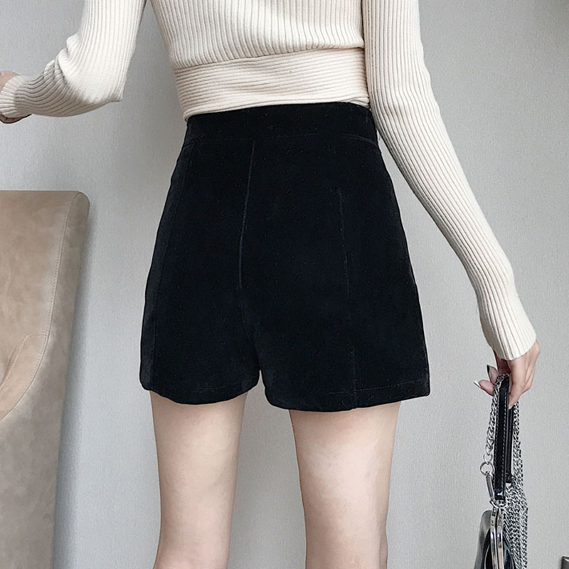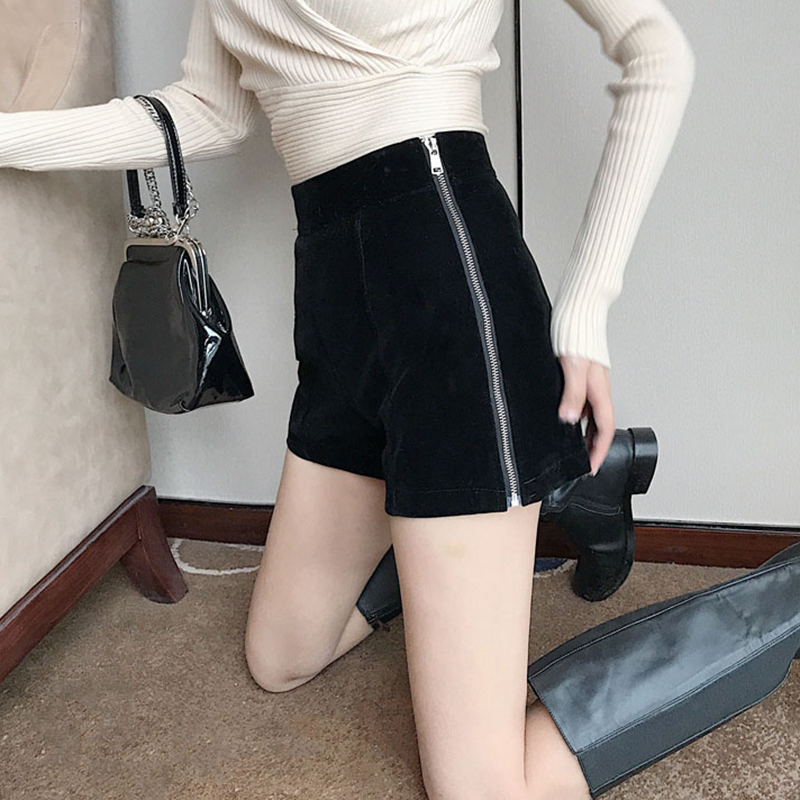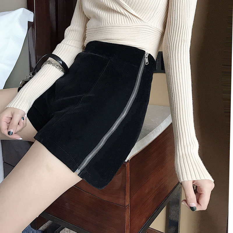 / 絲絨雙拉鏈短靴褲女秋冬裝2018新款韓版氣質高腰顯瘦休閑闊腿褲子