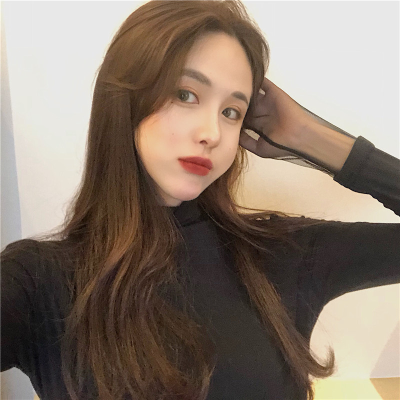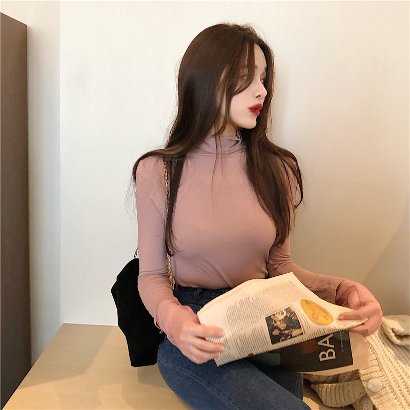 初秋新款女上衣韓版時尚chic基礎款百搭顯瘦高領純色打底衫t恤女