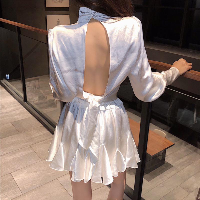/ 女神套裝秋冬2018新款小心機鏤空露背上衣氣質顯瘦荷葉邊半身裙子