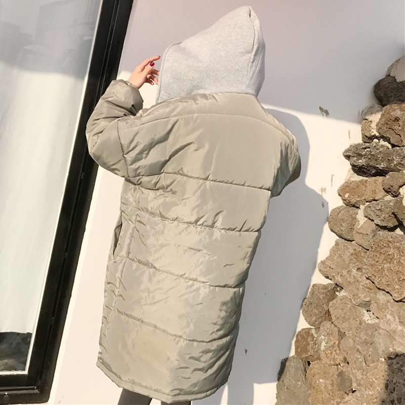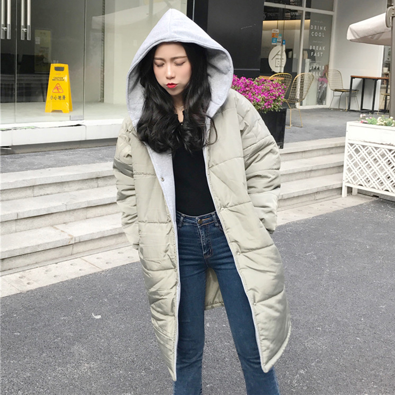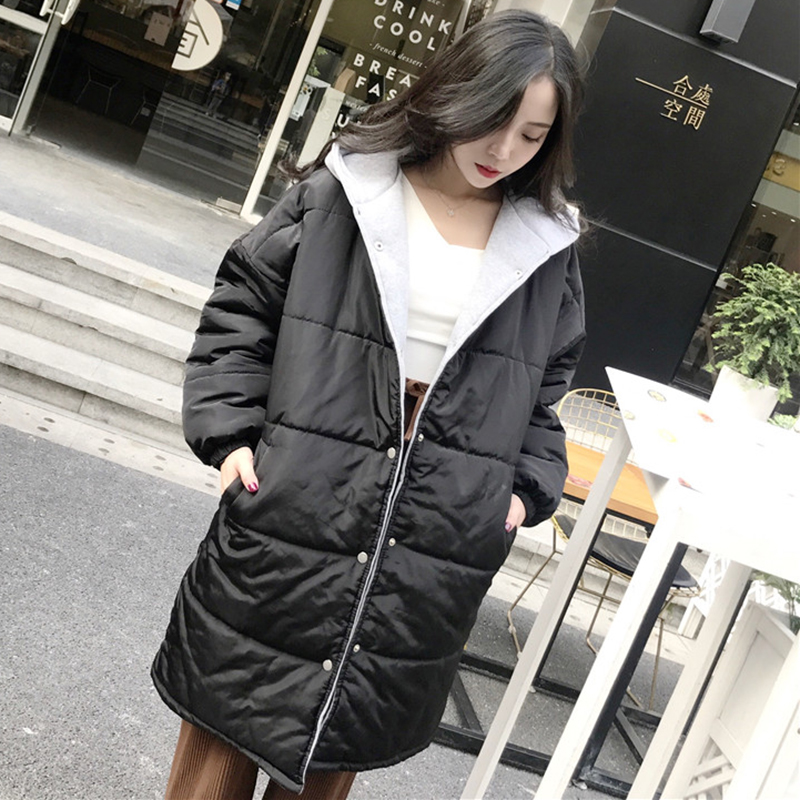休閑連帽棉襖2018冬季女裝新款學生過膝黑色面包服寬松棉衣外套潮