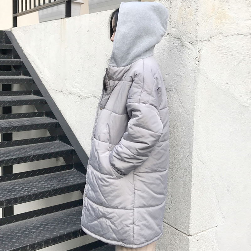 / 休閑連帽棉襖2018冬季女裝新款學生過膝黑色面包服寬松棉衣外套潮