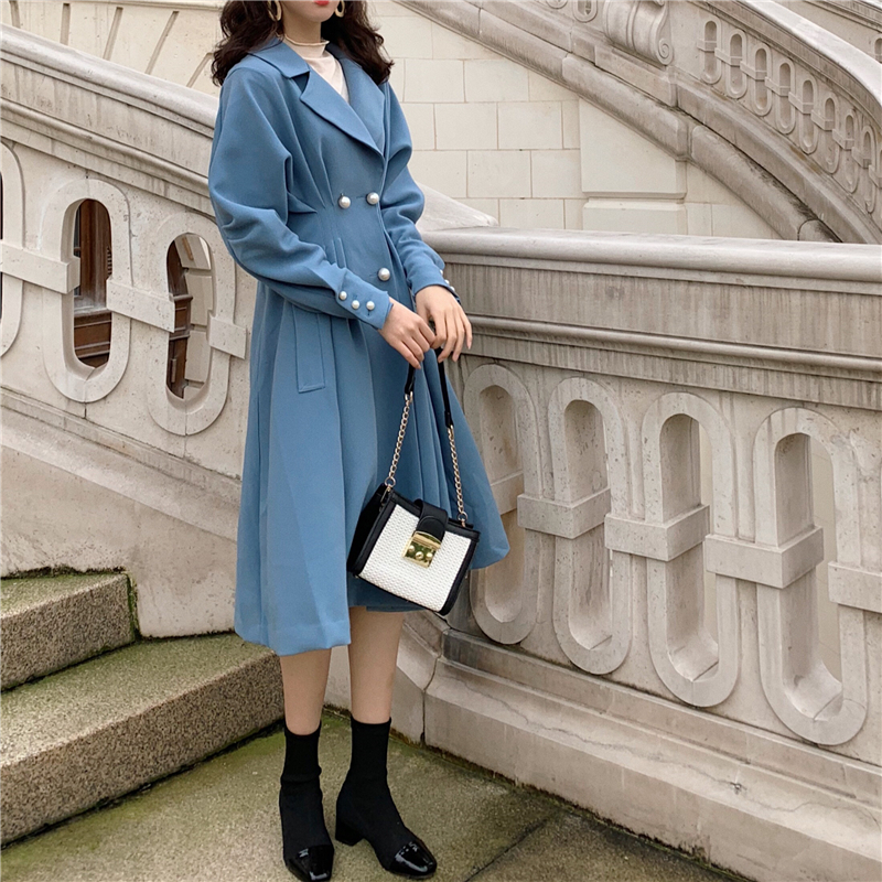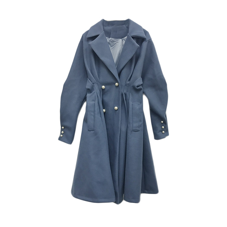 / 復古韓國chic風時尚收腰氣質中長款毛呢外套女蝙蝠袖釘珠呢子大衣