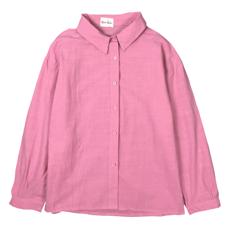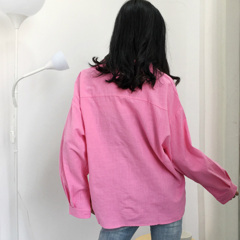 / 早春新款女裝粉色甜美百搭中長款寬松顯瘦學生長袖打底襯衣襯衫女