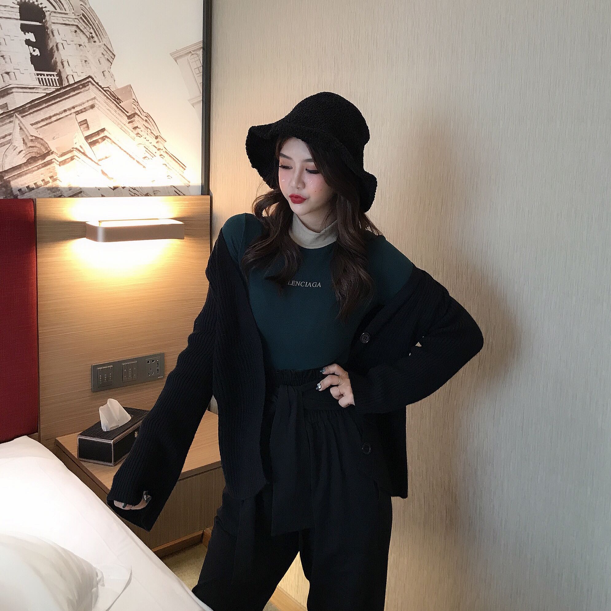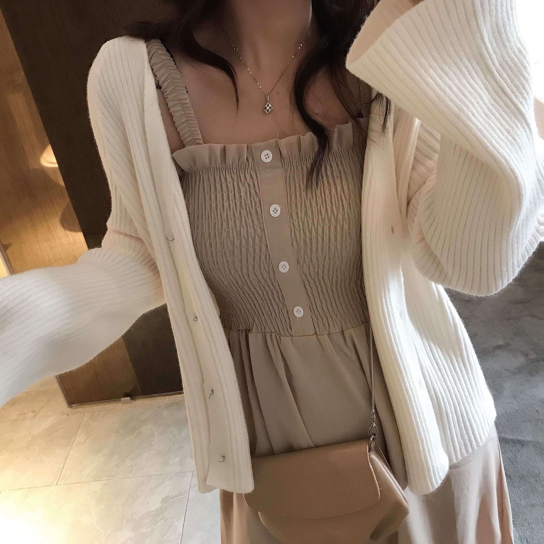 馬海毛網紅毛衣女2018新款針織開衫外套冷淡風針織吊帶連衣裙套裝