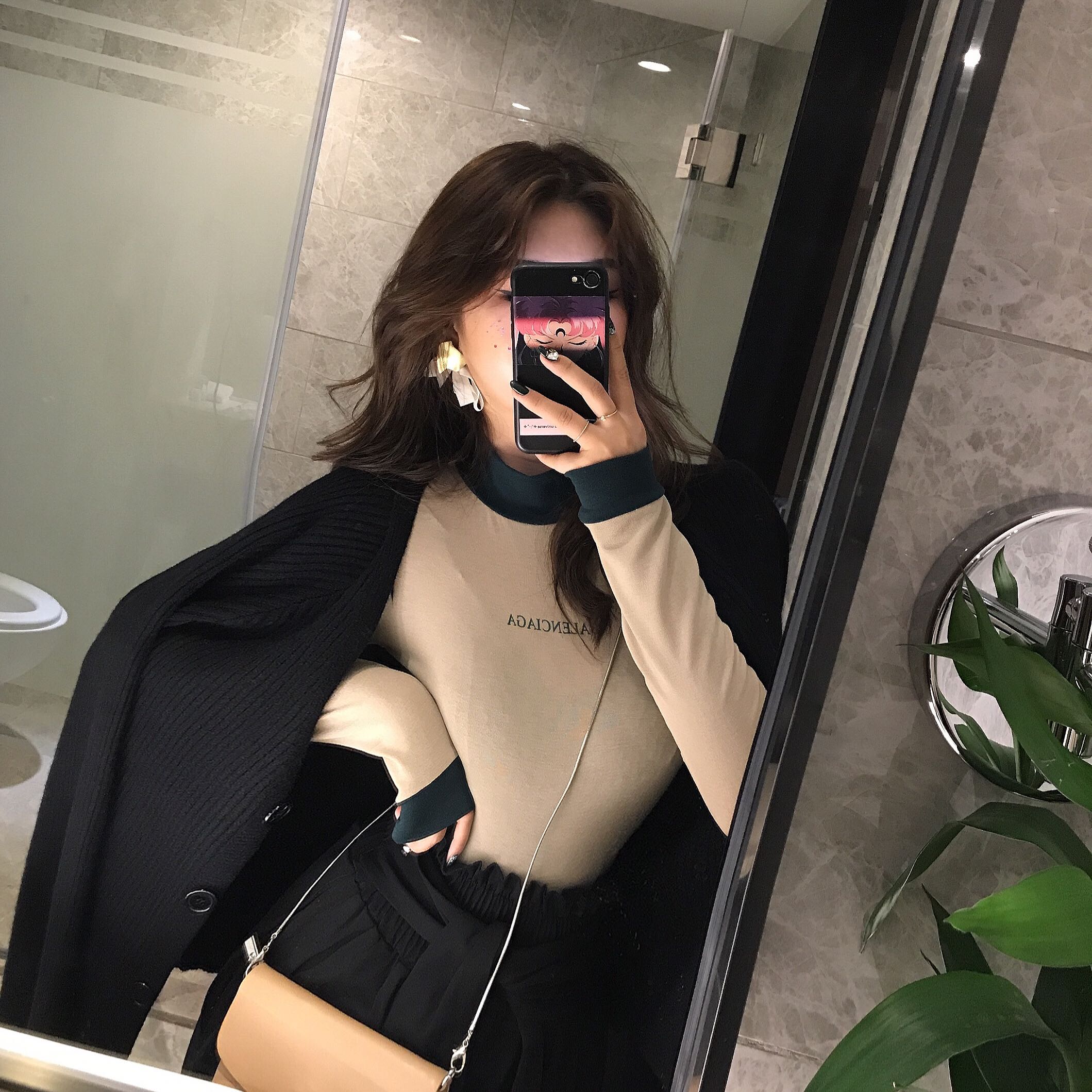 chic早秋上衣慵懶寬松顯瘦純色長袖V領針織衫開衫外套女韓版新款