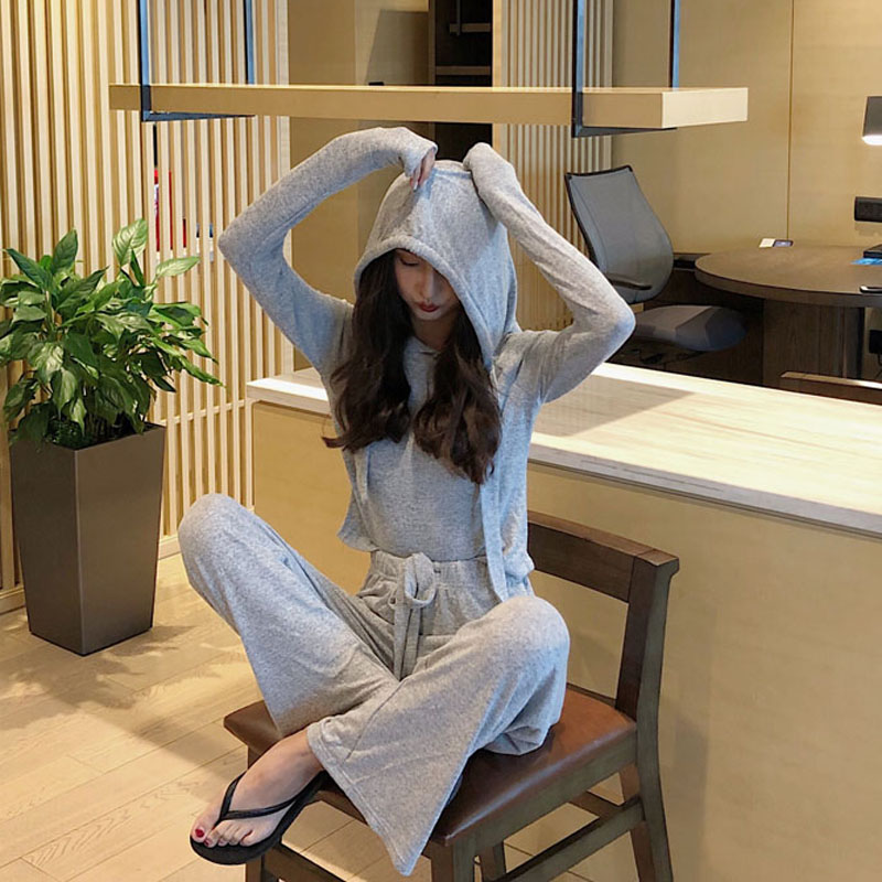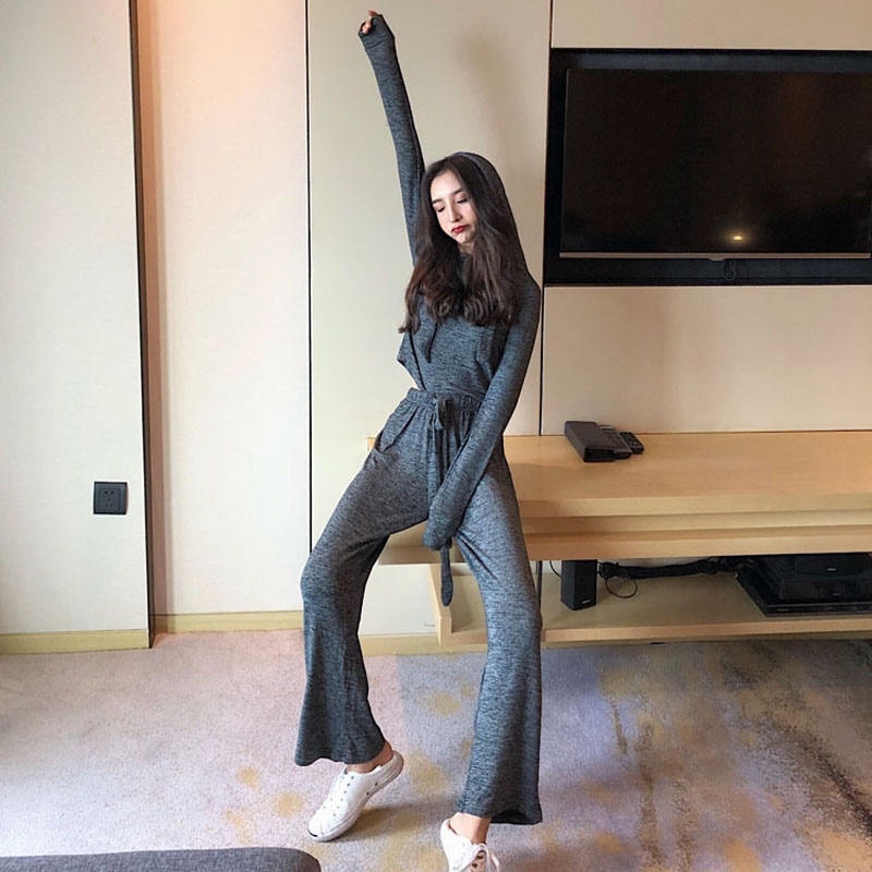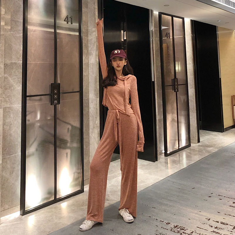 復古港味運動舒適兩件套秋裝女2018新款套裝連帽衛衣寬松闊腿長褲