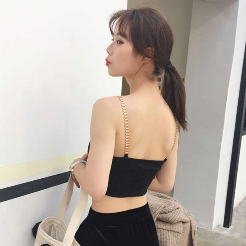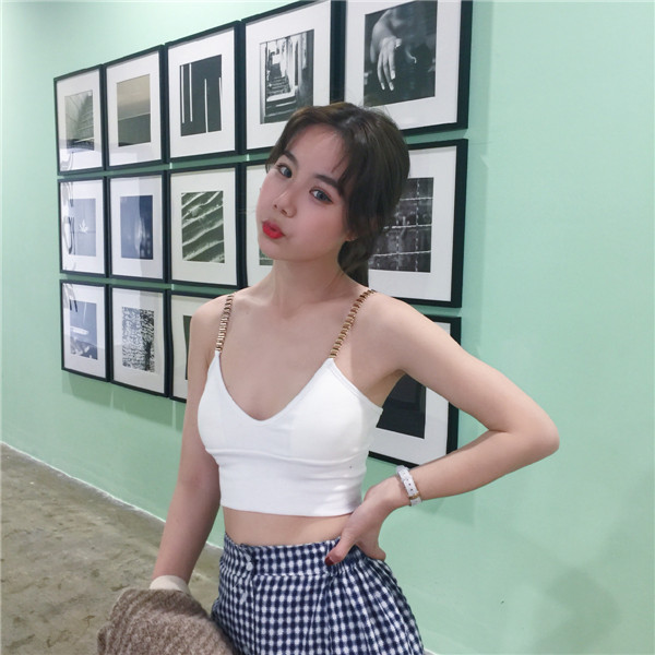 / 春夏新款女裝韓版金屬鏈百搭短款露臍抹胸胸墊學生打底吊帶小背心