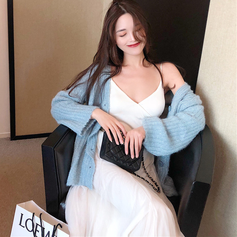 白色毛衣開衫|藍色毛衣開衫|粉色網紗裙|白色網紗裙
