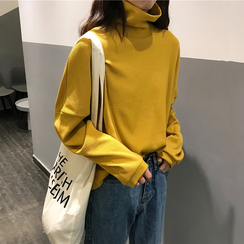 高領寬松打底衫女秋冬裝新款長袖上衣外穿套頭T恤黑色時尚上衣潮