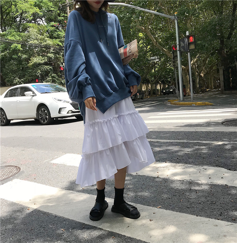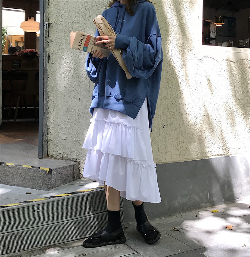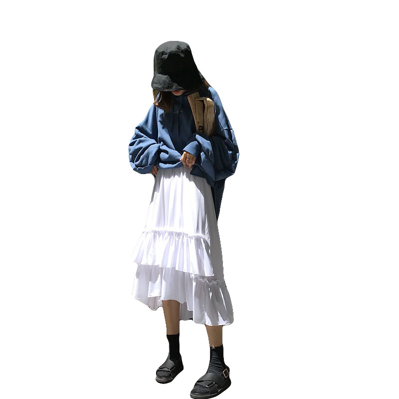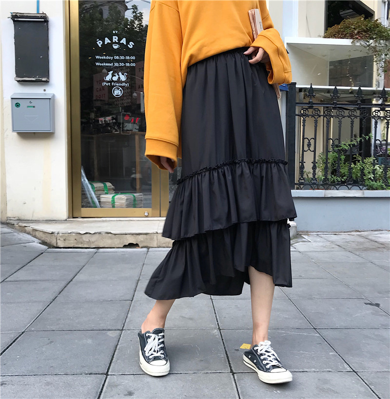 / 韓系chic寬松百搭不規則雙層中長款半身裙秋裝女2018新款高腰裙子