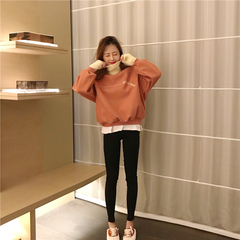 韓版假兩件毛呢料衛衣女秋冬2018新款套頭加厚寬松高領長袖上衣潮