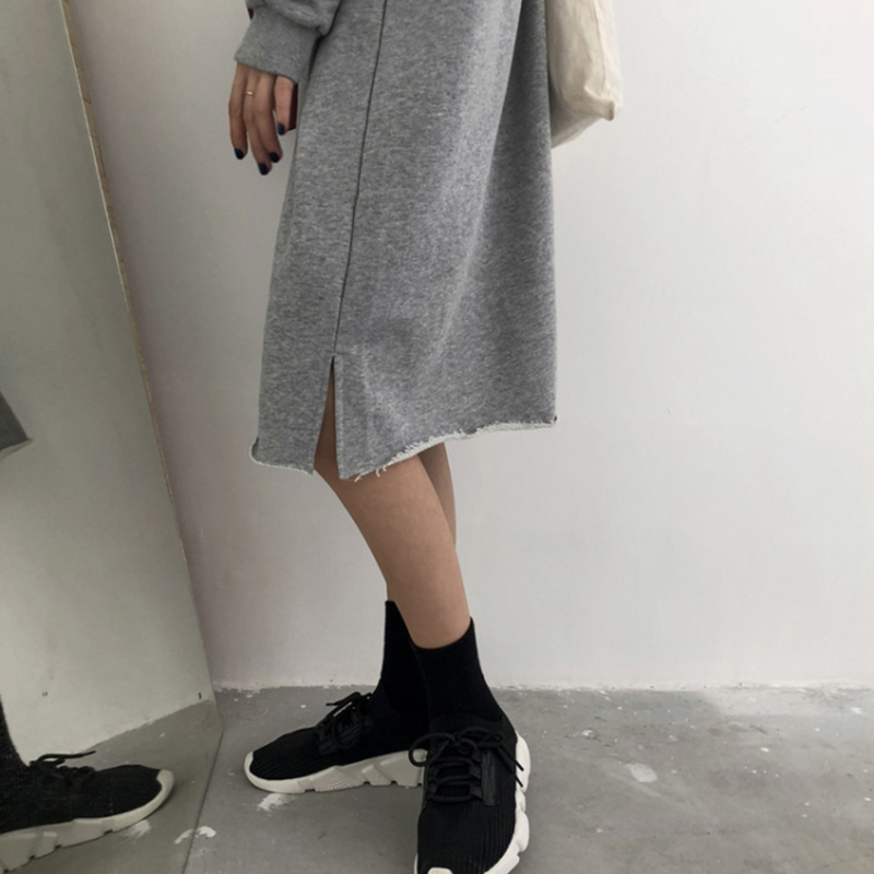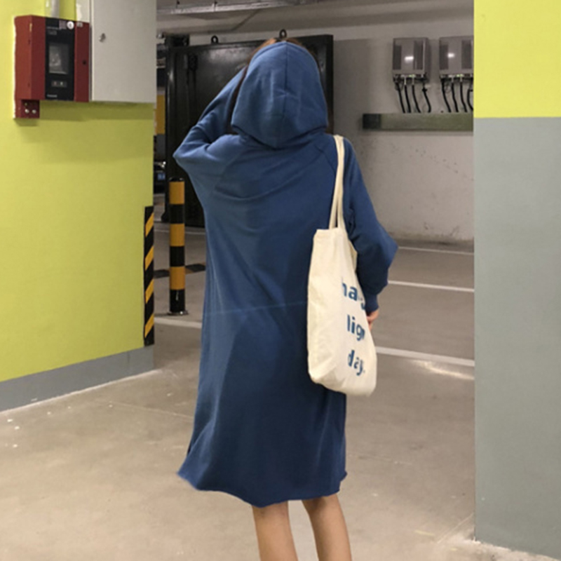 / 慵懶風長袖連衣裙女秋裝2018新款韓版字母寬松休閑連帽中長裙子潮