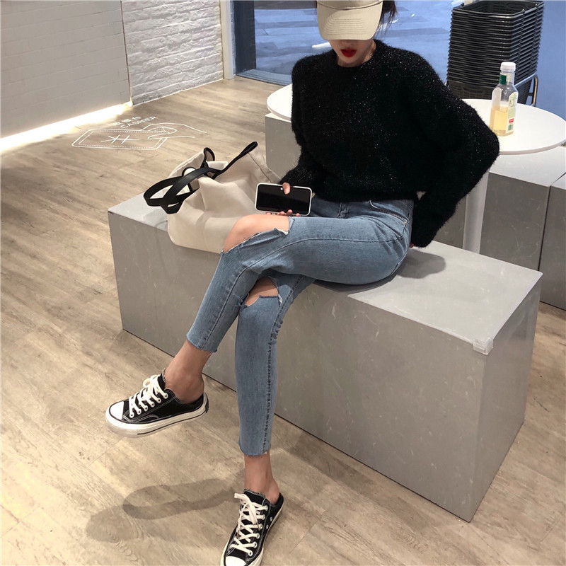 / 時尚百搭閃閃毛毛套頭加厚寬松顯瘦韓版上衣網紅毛衣女2018新款潮