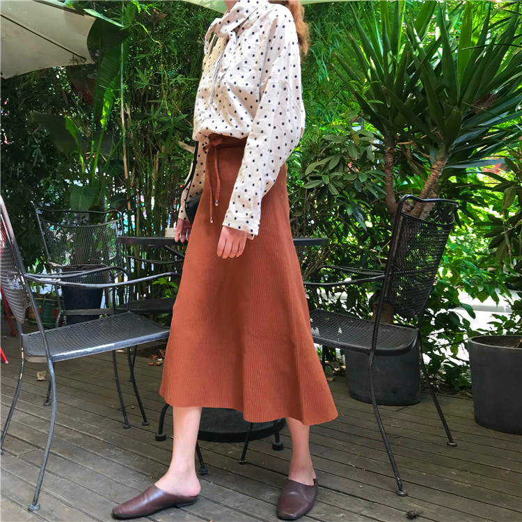 / 時尚中長款A字裙女秋冬裝2018新款韓版氣質高腰顯瘦針織半身裙子