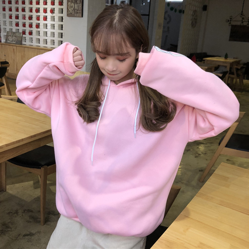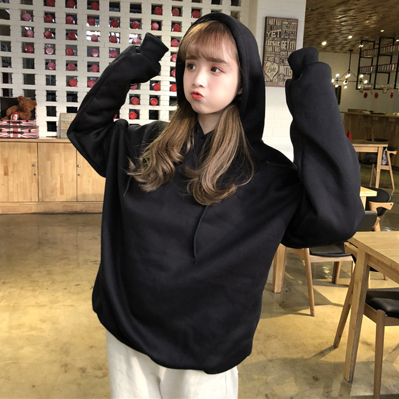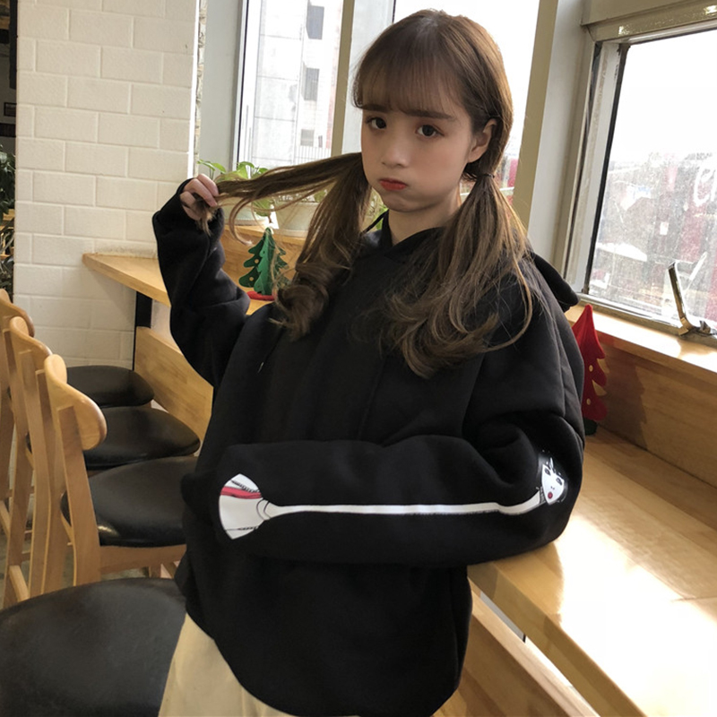 學院風印花套頭衛衣女秋冬裝2018新款韓版寬松顯瘦長袖連帽外套潮