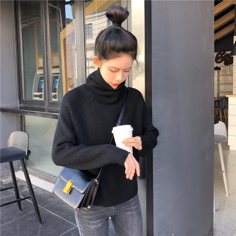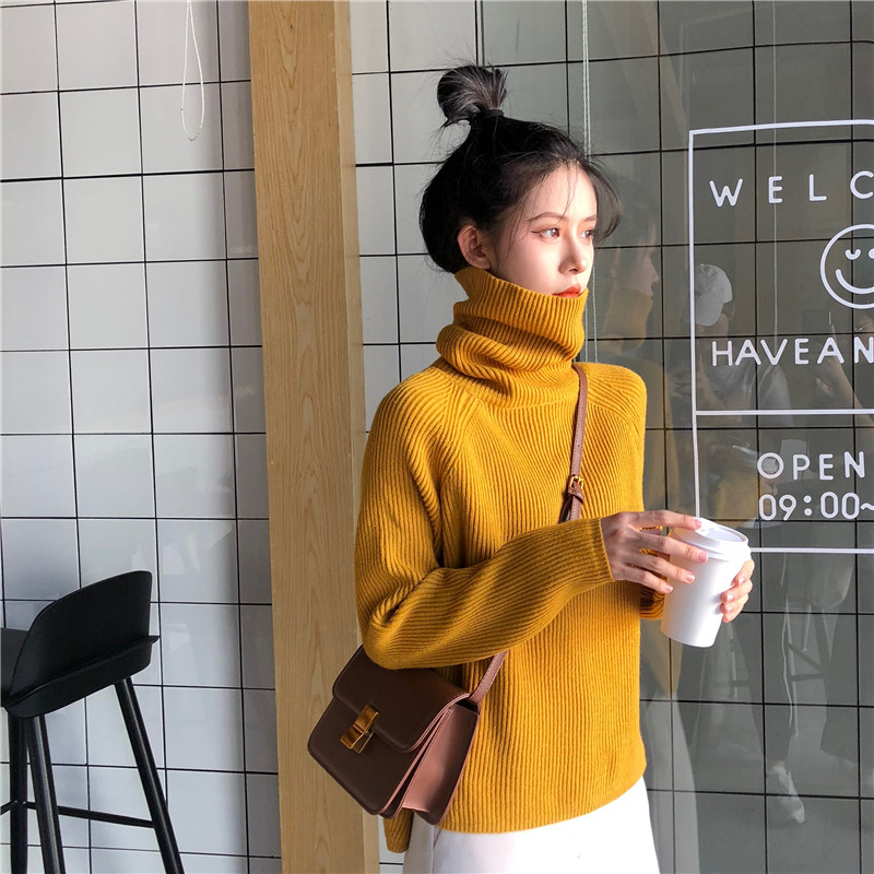 / 慵懶風套頭毛衣女2018新款秋冬韓版包芯紗厚實前短后長高領針織衫