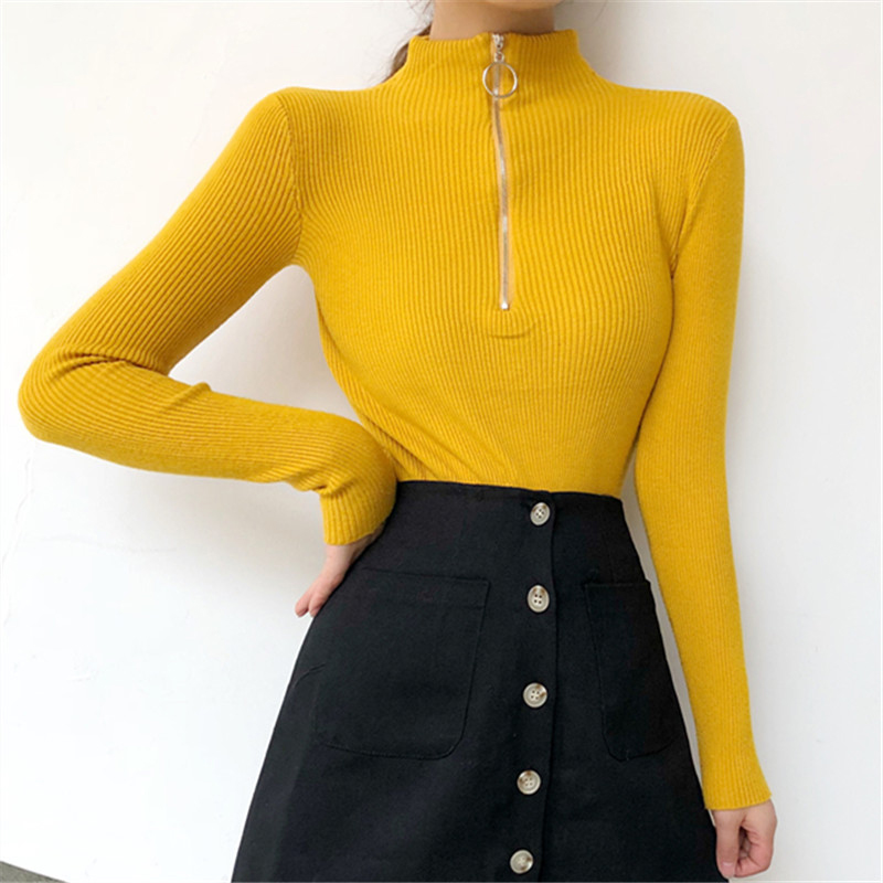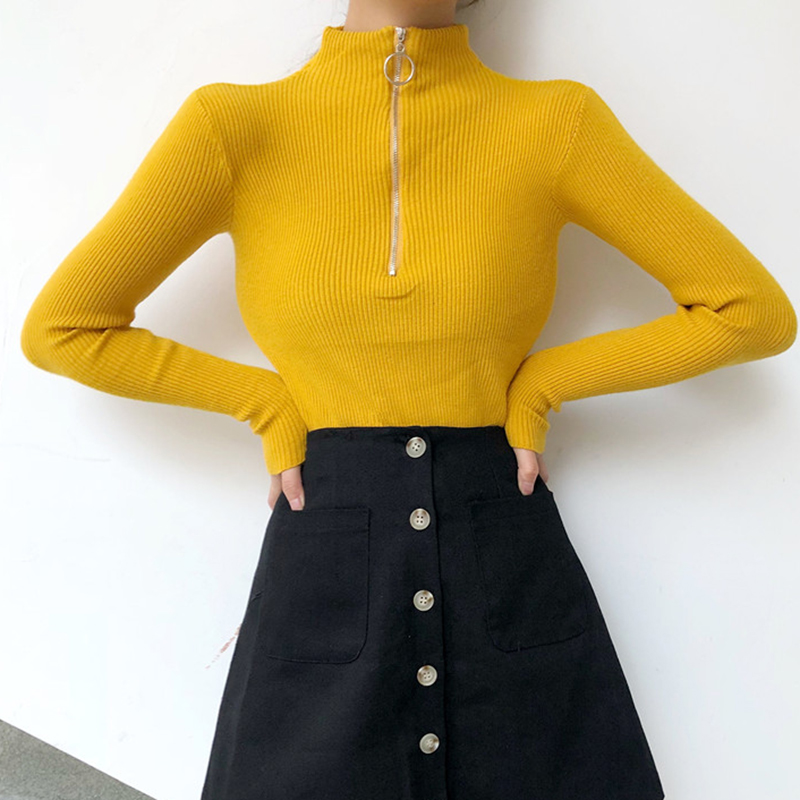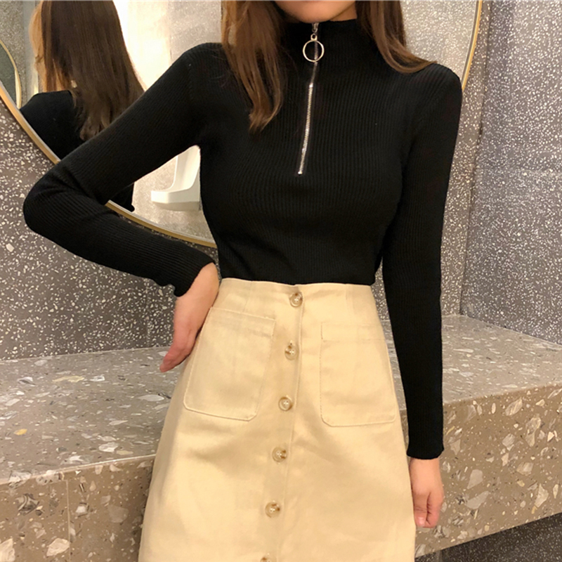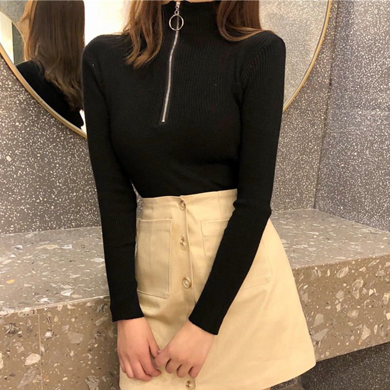 chic拉鏈圓領針織衫女秋冬裝2018新款韓版氣質修身顯瘦打底薄毛衣