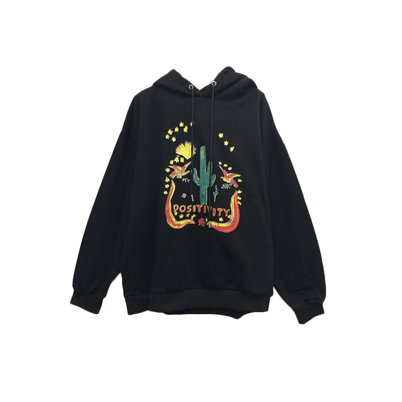 港味復古時尚衛衣2018新款女顯瘦百搭寬松印花下擺不對稱加絨上衣