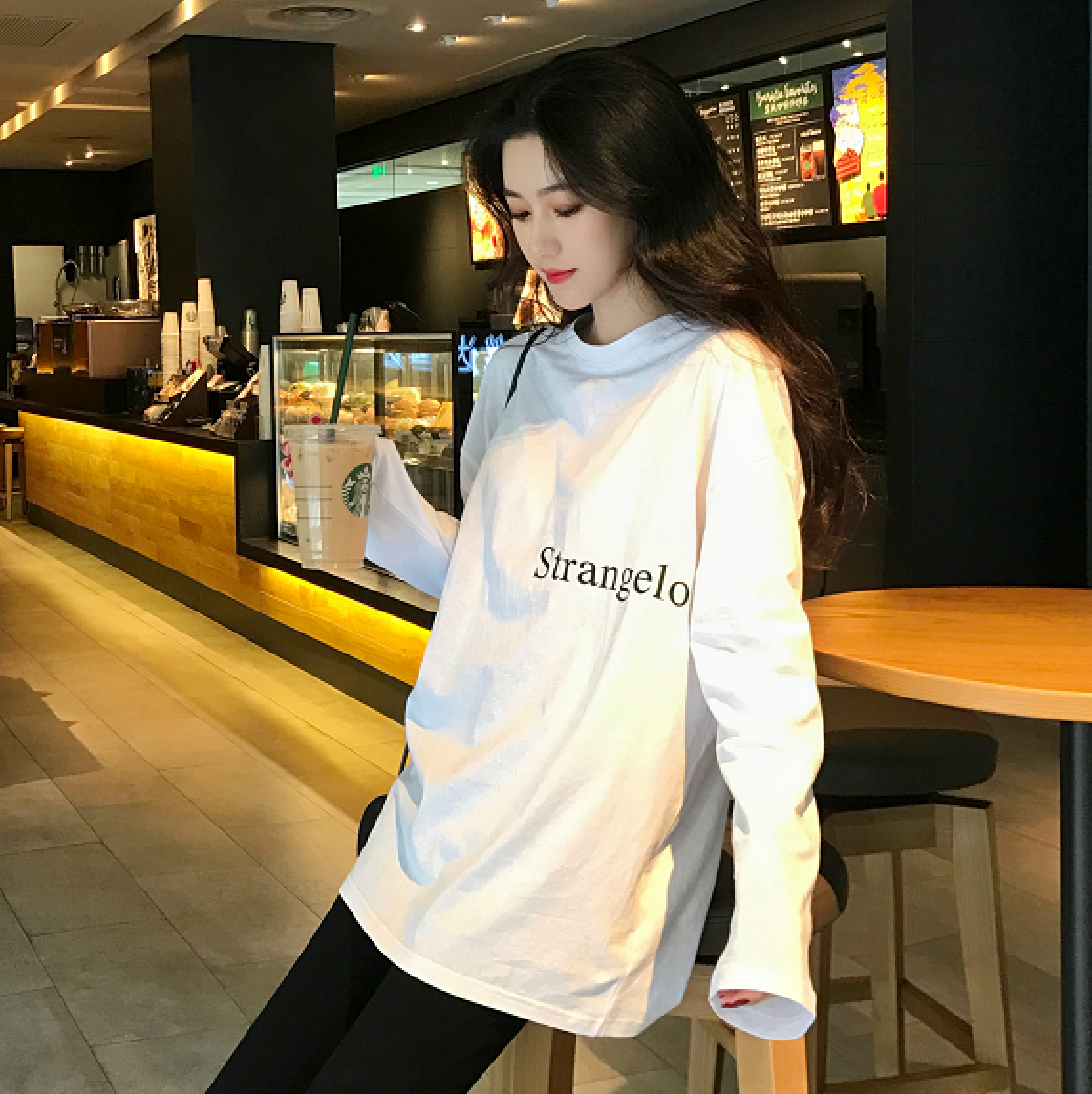 秋裝女2018新款短袖t恤學生寬松顯瘦長袖白色打底衫中長款上衣潮
