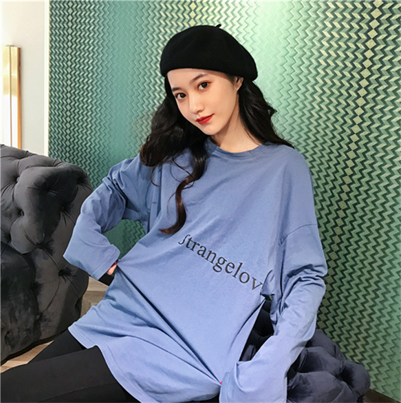 / 初秋上衣韓版寬松顯瘦百搭長袖打底衫女T恤字母印花時尚打底Tee潮
