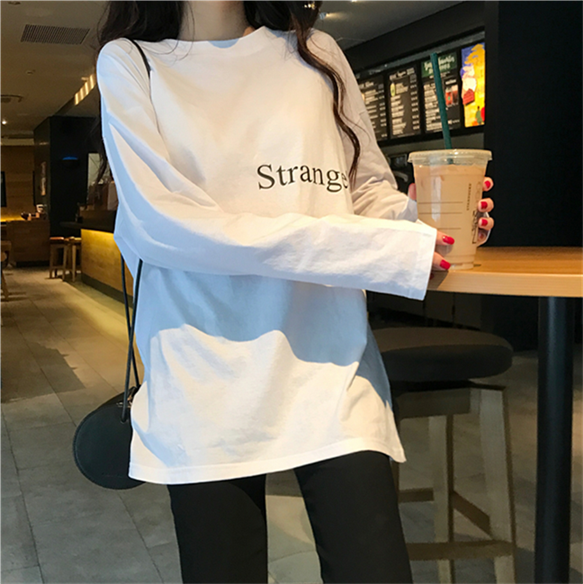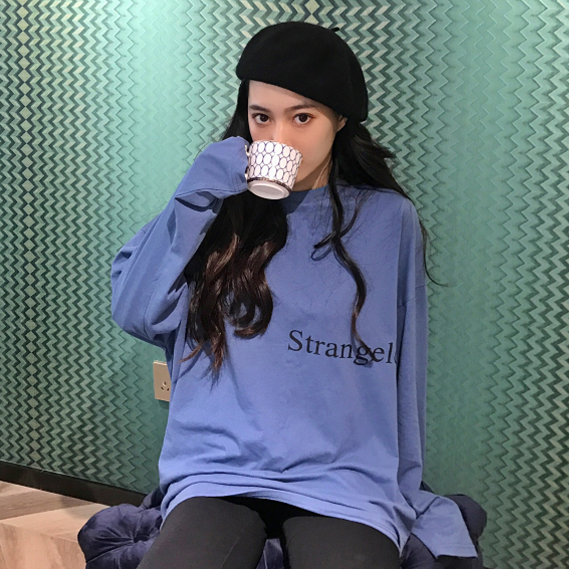 初秋上衣韓版寬松顯瘦百搭長袖打底衫女T恤字母印花時尚打底Tee潮