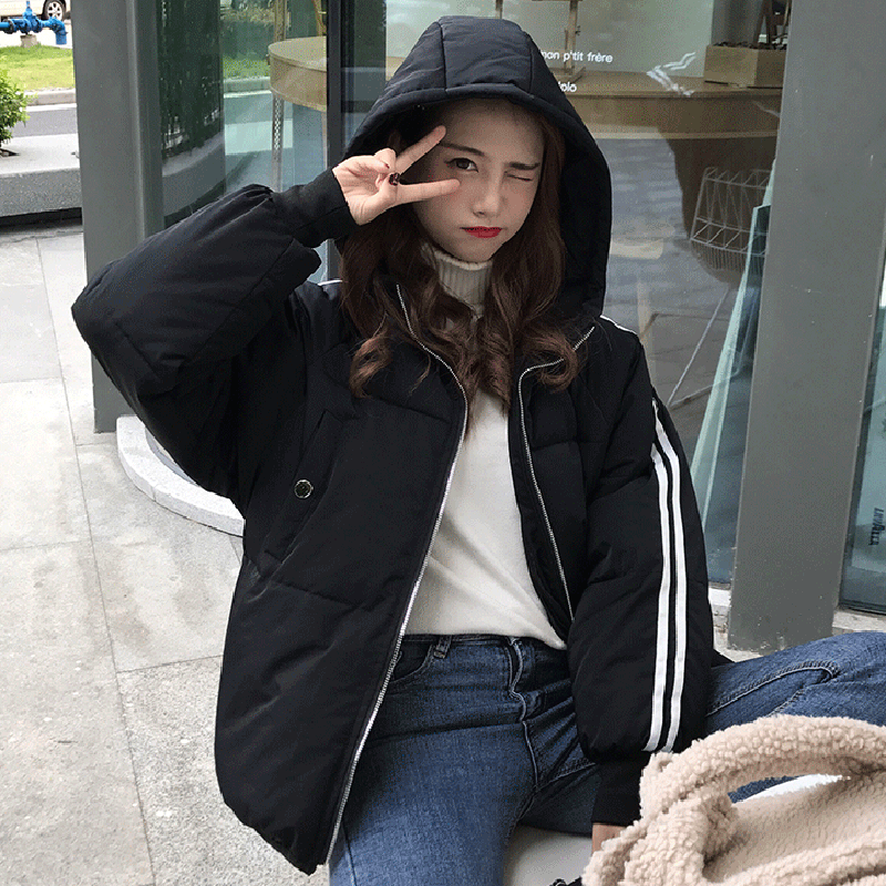 寬松加厚棉襖2018冬季女裝新款時尚黑色面包服學院風休閑外套棉衣