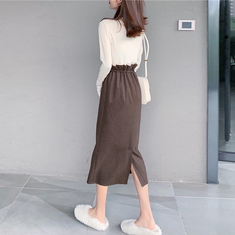 / 御姐套裝女秋冬新款時尚修身長袖T恤打底衫高腰顯瘦黑色半身裙子